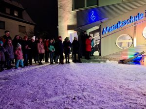 Was für ein tolles Winter-Weihnachtswetter! Schnee, Frost, Glühwein, Kinderpunsch – und jede Menge begeisterte kleine, mittlere wie große Künstler und Künstlerinnen beim ersten Hof-Weihnachtsvorspiel vor der Musikschule Eberhard am 16. Dezember 2022!